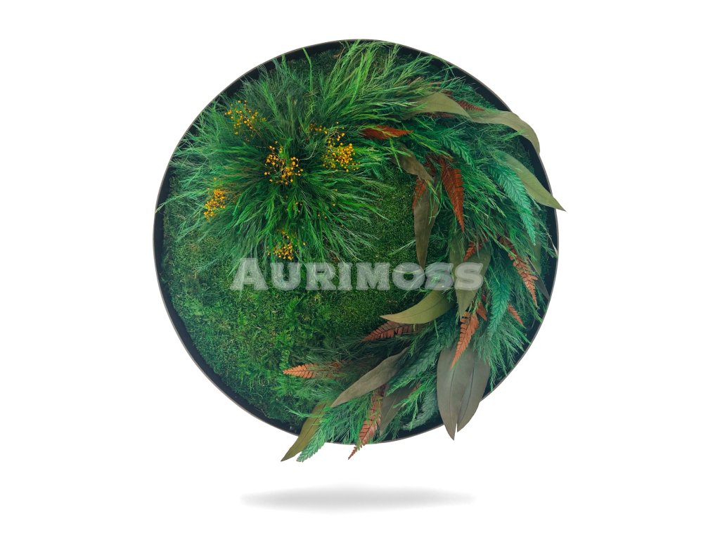 Das Moosbild „Kreis des Lebens“ ist ein originelles Naturkunstwerk, das Harmonie, Balance und den ewigen Kreislauf der Natur symbolisiert. Die runde Form wirkt beruhigend und zieht natürlich die Aufmerksamkeit auf sich. Die Komposition aus stabilisiertem Moos, natürlichen Gräsern, Blättern und kleinen Blüten vermittelt Bewegung und Wachstum. Das handgefertigte, pflegefreie Bild eignet sich ideal für moderne Innenräume, Büros, Hotels und Wellnessbereiche.