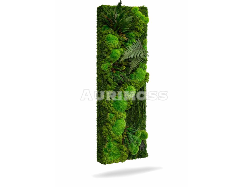 Das Moospanel mit Pflanzen Aurimoss ist eine Premium-Designlösung, die eine Mischung aus stabilisierten Moosen (Flechtenmoos, Kugelmoos und Flachmoos) mit sorgfältig ausgewählten stabilisierten Pflanzen kombiniert. Das Ergebnis ist eine markante grüne Wand für den Innenraum, die natürlich, modern und repräsentativ wirkt.