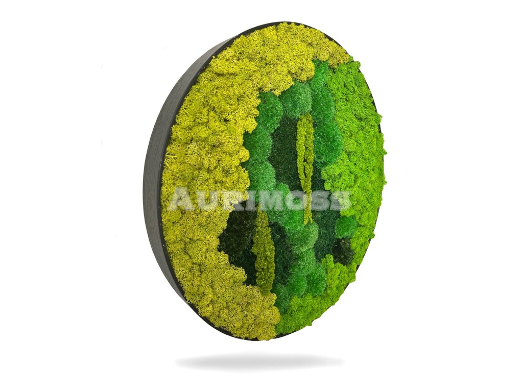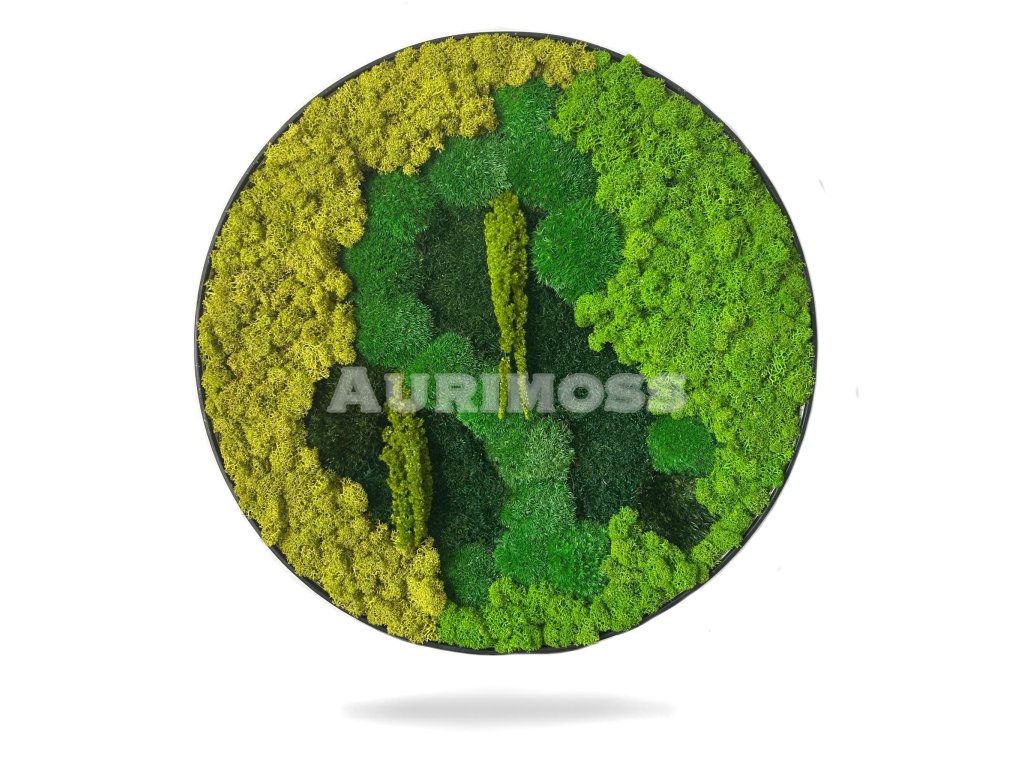 Dekoratívny kruhový machový obraz – mix machov s amarantom je ručne vyrábaná interiérová dekorácia zo stabilizovaných machov. Kombinácia rôznych druhov machu a výrazného amarantu vytvára prirodzený 3D efekt a živý dizajn. Machový obraz je bezúdržbový, nevyžaduje zalievanie ani svetlo a je ideálny do moderných bytov, kancelárií, hotelov či komerčných priestorov. Prírodný mach zlepšuje akustiku a dodáva priestoru pokojnú atmosféru.