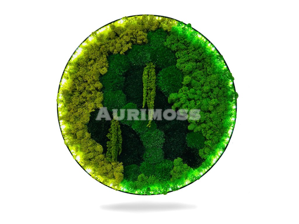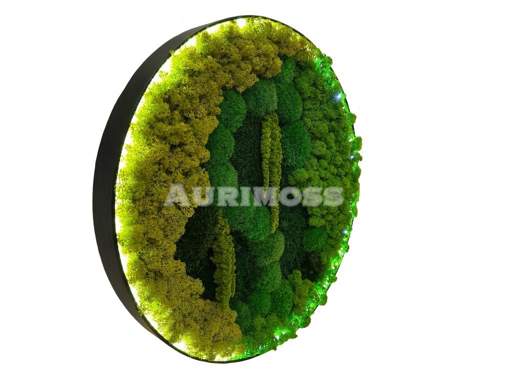 Dekoratívny machový obraz – mix machov s amarantom a LED podsvietením je ručne vyrábaná interiérová dekorácia zo stabilizovaných prírodných machov. Kombinácia rôznych druhov machu a amarantu vytvára výrazný 3D efekt, zatiaľ čo LED podsvietenie dodáva obrazu hĺbku a jemné ambientné svetlo. Machový obraz je ideálny do moderných bytov, kancelárií, hotelov, reštaurácií a reprezentatívnych priestorov.