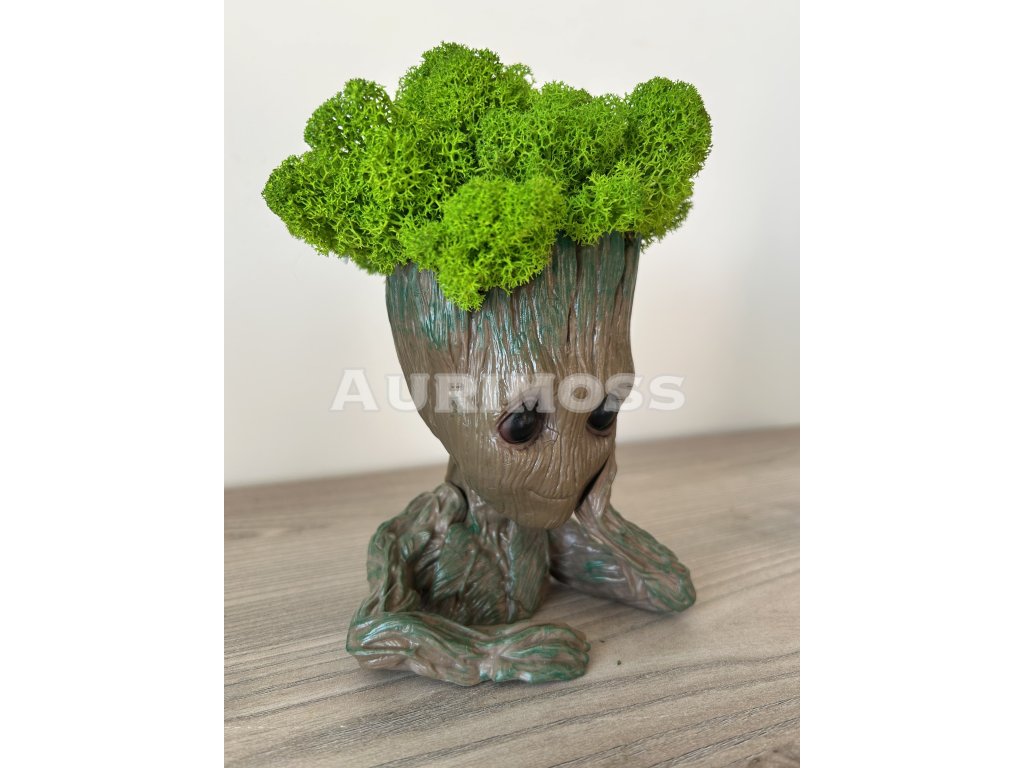 Groot so stabilizovaným zeleným lišajníkovým machom je štýlový dekoratívny prvok do interiéru. Výška výrobku je 17 cm. Nevyžaduje údržbu, dlhodobo si zachováva sýtu farbu a mäkkú štruktúru. Ideálny do domácnosti, kancelárie alebo ako originálny darček.