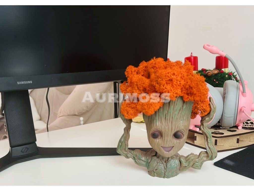 Groot so stabilizovaným lišajníkom je jedinečný dekoratívny prvok, ktorý spája obľúbenú postavičku s prírodným materiálom. Výrobok je vytvorený zo stabilizovaného lišajníkového machu, ktorý prechádza špeciálnym procesom úpravy, aby si zachoval prirodzenú mäkkosť, farbu a štruktúru. Vďaka stabilizácii mach nevyžaduje polievanie, osvetlenie ani špeciálnu údržbu, nepriťahuje prach a zachováva si atraktívny vzhľad po mnoho rokov. Sýta zelená farba prináša do interiéru pocit útulnosti a prírodnej harmónie. Výška výrobku je 17 cm, čo ho robí ideálnym na umiestnenie na stôl, policu alebo do vitríny. Dekor je vhodný do domácnosti, kancelárie, detskej izby a zároveň predstavuje originálny darček pre milovníkov eko-dekoru a moderného dizajnu. Výhody: prírodný stabilizovaný mach, nevyžaduje údržbu, dlhá životnosť a stála farba, antistatické vlastnosti, kompaktný rozmer, jedinečný dizajnový vzhľad. Tento Groot sa stane výrazným akcentom interiéru a prinesie do priestoru kúsok prírody bez starostí.