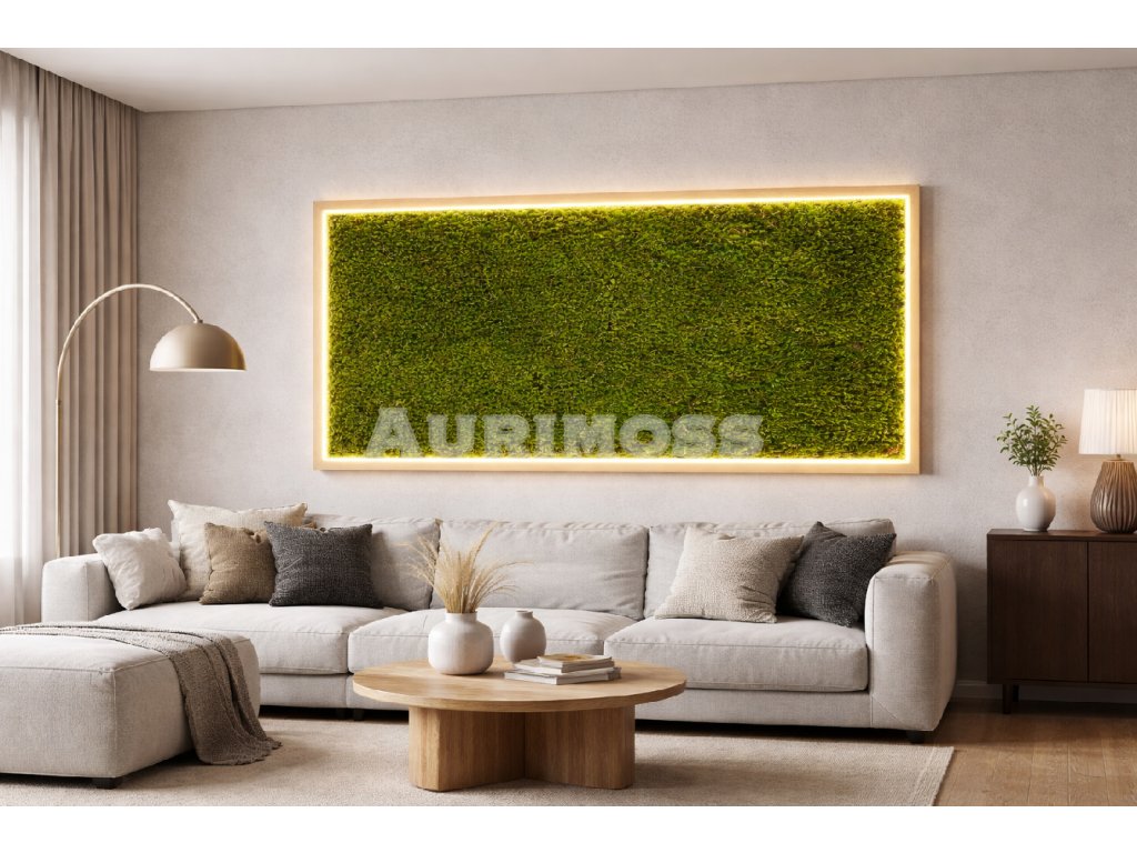 Hranatý machový obraz z long moss Fragment prírody s podsvietením
