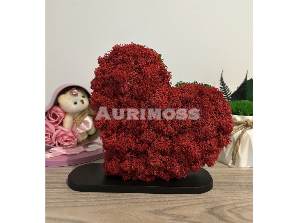 Dekoratívne stolové srdce vyrobené z prírodného stabilizovaného machu. Nevyžaduje starostlivosť, polievanie ani svetlo. Zachováva si svoj vzhľad a farbu dlhé roky. Štýlový eko-dekor a dokonalý darček na Valentína alebo ako symbol večnej lásky.