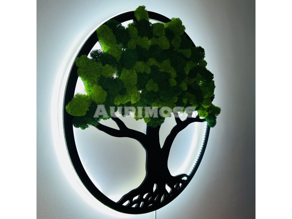 Machové drevo s LED podsvietením a rôznymi druhmi lišajníka