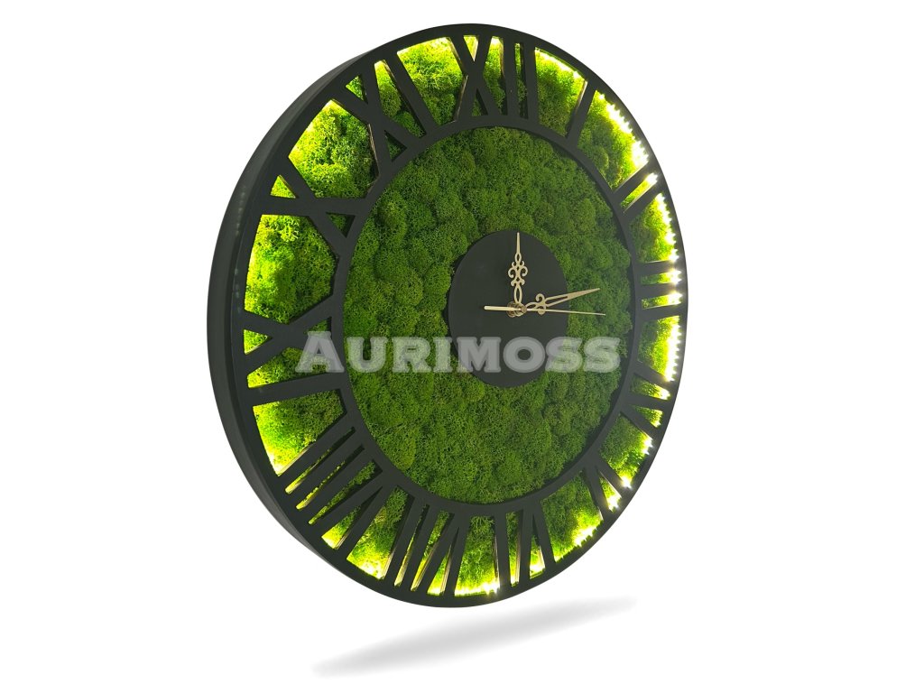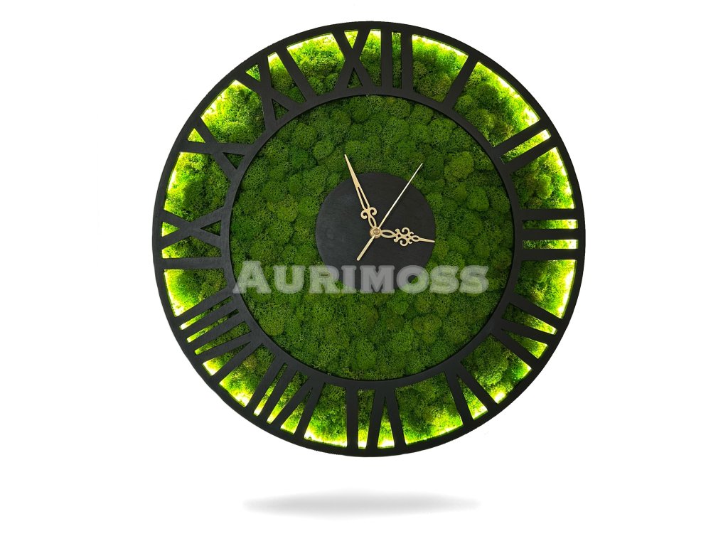 Dizajnové nástenné hodiny so stabilizovaným machom lišajník a jemným LED podsvietením. Spájajú prírodu, svetlo a moderný štýl v jednom jedinečnom doplnku interiéru.