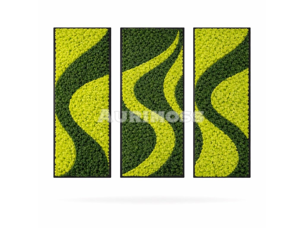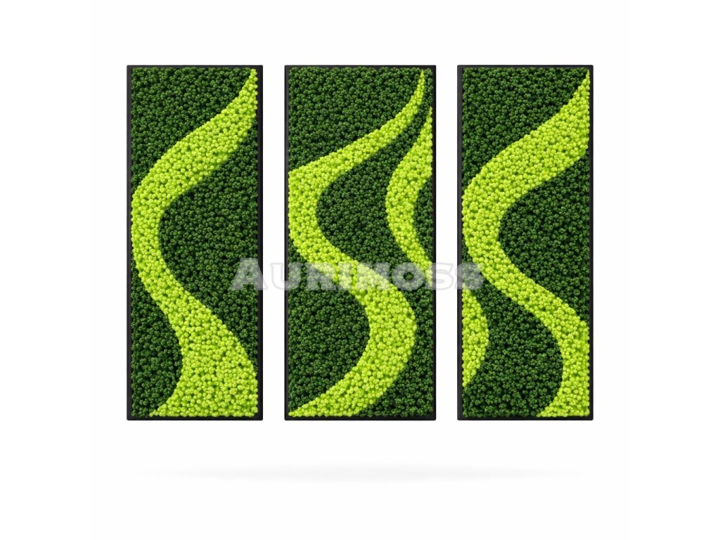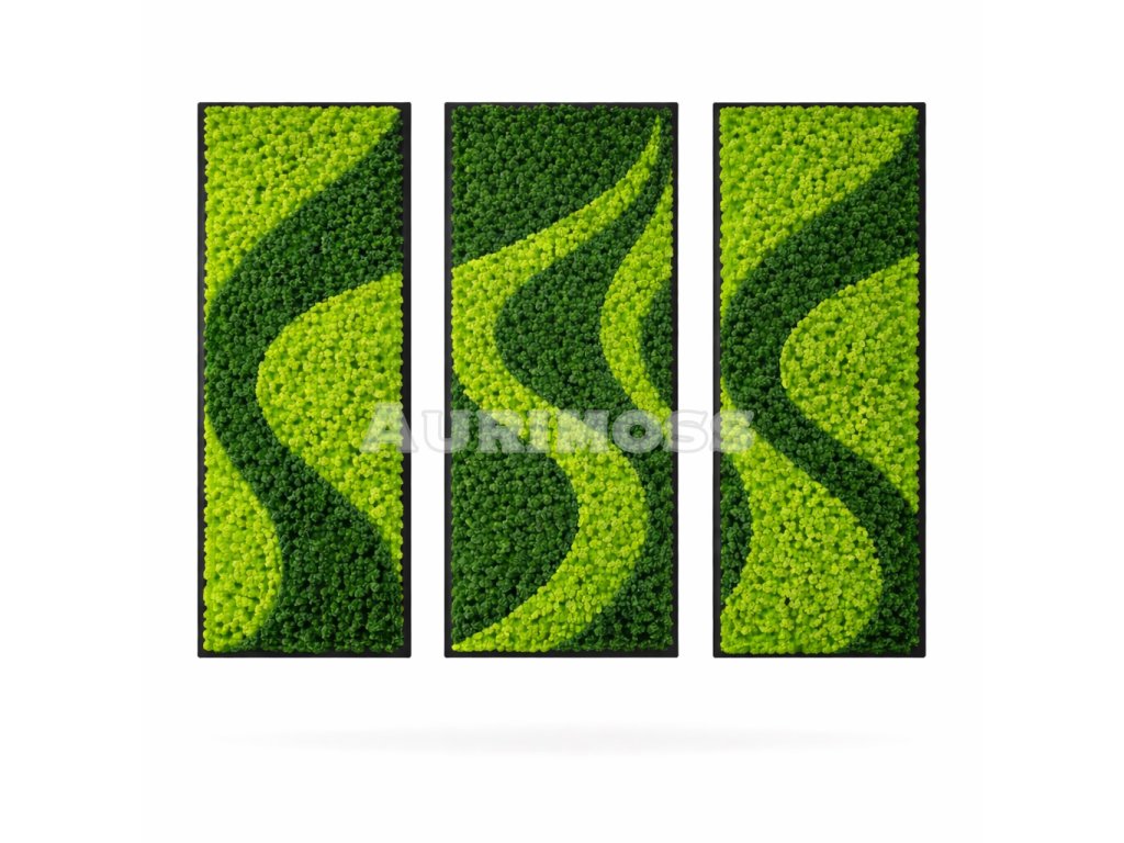 Set machových obrazov zo stabilizovaného machu Aurimoss - Zelená vlna
