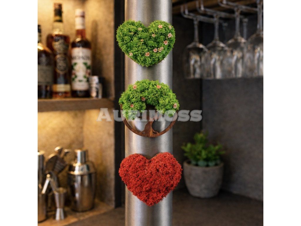 Machový magnet v tvare stromčeka je štýlový a originálny doplnok do domácnosti. Kombinácia stabilizovaného machu a lišajníka vytvára jedinečný prírodný vzhľad, ktorý nevyžaduje žiadnu údržbu. Tento dekoratívny magnet je ideálny ako darček alebo ako dizajnový prvok do moderného aj rustikálneho interiéru.