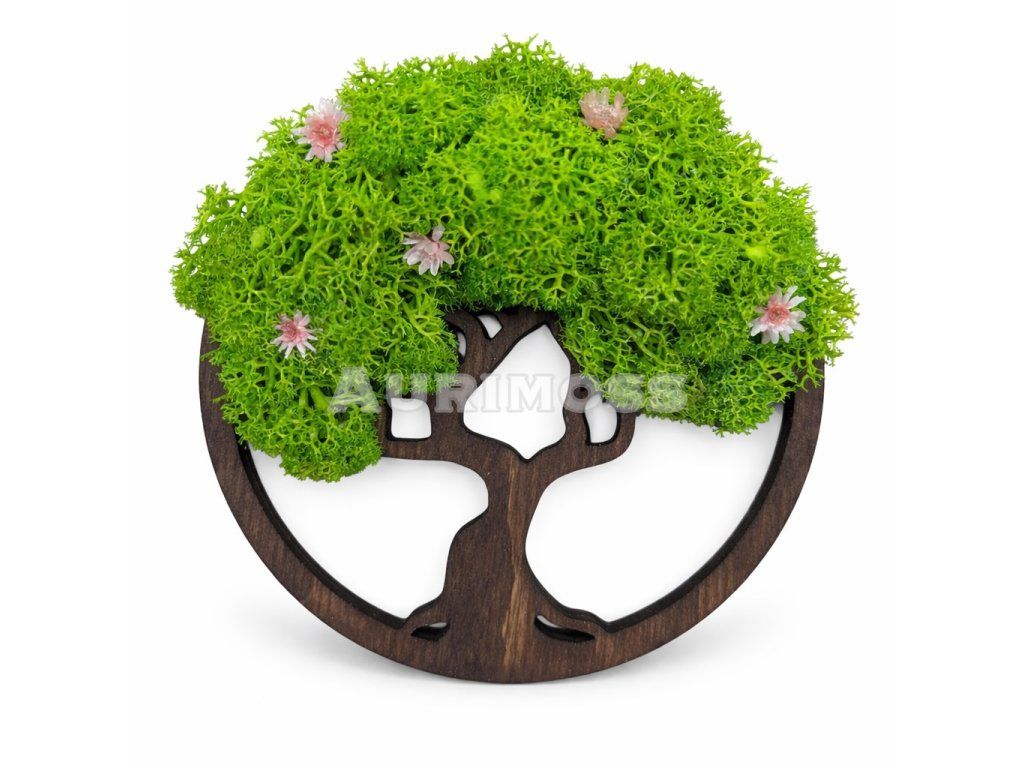 Dekoratívny machový magnet v tvare stromčeka s prírodným lišajníkom, ideálny na ozdobenie chladničky alebo kovových povrchov. Ručne vyrábaný dizajn dodá vášmu interiéru jemný prírodný nádych.