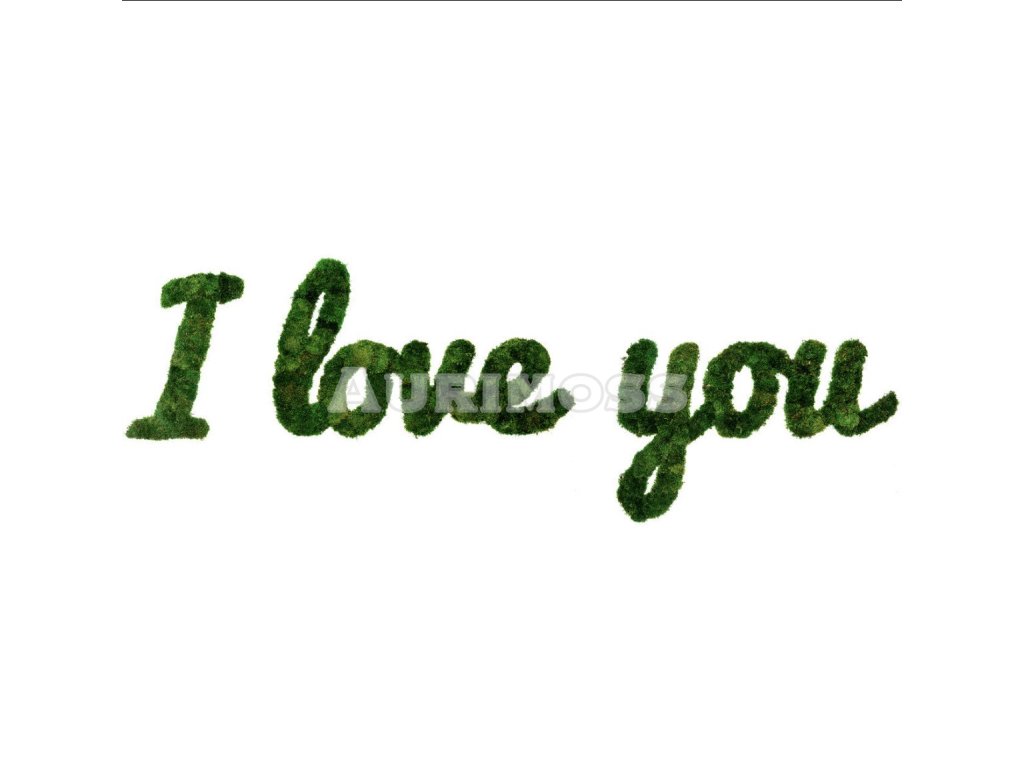 Ručne vyrábaný machový nápis Aurimoss s LED podsvietením „I Love You“ zo stabilizovaného lišajníka alebo plochého machu. Dizajnová prírodná svetelná dekorácia bez údržby.