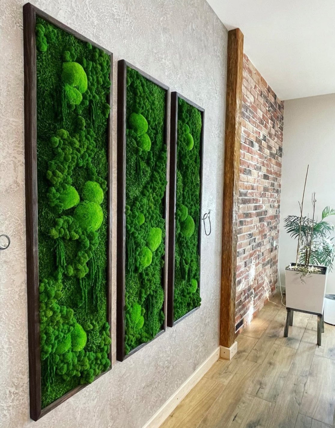 Machové obrazy pôsobia najlepšie v kombinácii s prírodnými materiálmi: