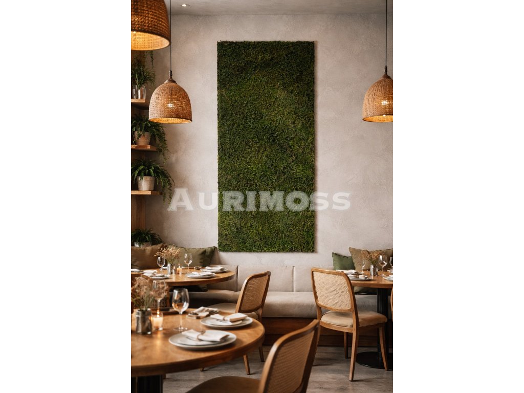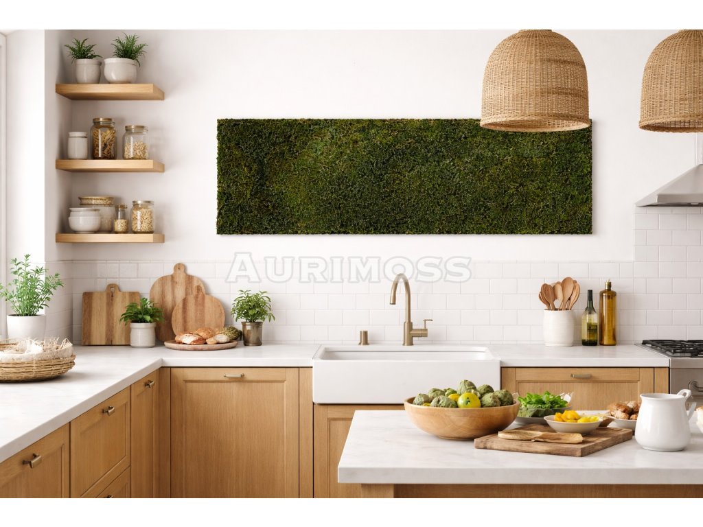 Machový panel z plochého machu Aurimoss je elegantná bezúdržbová prírodná dekorácia do interiéru. Vyrobený zo stabilizovaného machu, vytvára modernú zelenú stenu s čistým a harmonickým dizajnom.
