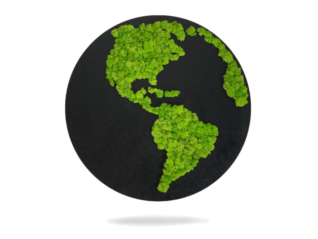 Predstavujeme vám jedinečný set machových obrázkov - kruhové mapy sveta z lišajníkom. Tento dekoratívny doplnok prináša do vášho domova alebo kancelárie dotyk prírody a moderný dizajn, ktorý okamžite priťahuje pozornosť. Využite príležitosť obohatiť svoju stenu týmto originálnym kúskom, ktorý odráža vašu lásku k prírode a estetiku minimalistického štýlu.